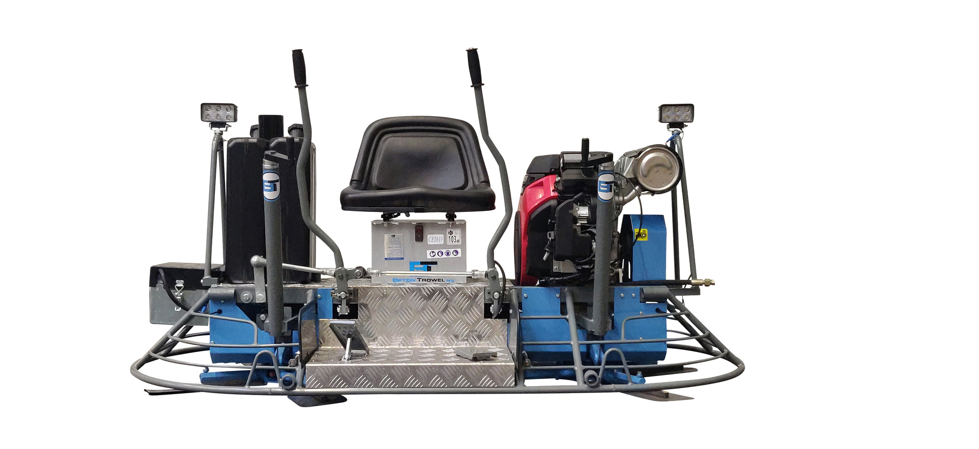 Der Low-Rider Doppelglätter von Betontrowel in 2x90 cm Arbeitsbreite ist die leistungsstarke Aufsitzlösung für professionelle Betonglätt-Anwendungen. Angetrieben vom robusten Honda GX690 V-Twin Motor mit 24 PS bietet die Maschine hohe Durchzugskraft, konstante Rotordrehzahlen und maximale Zuverlässigkeit.