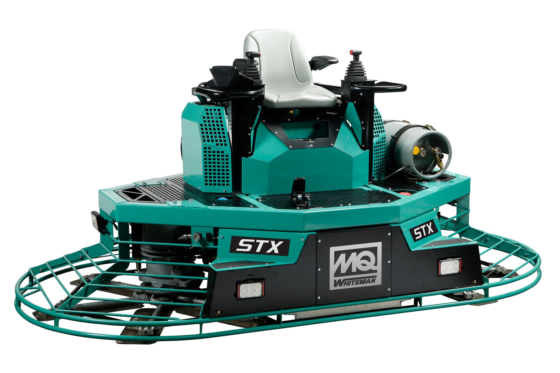Der MQ Whiteman ESTXDF ist ein hydraulischer Aufsitzglätter der neuesten Generation, entwickelt für maximale Leistung beim Glätten, Verdichten und Hochglanz-Finishing großer Betonflächen. Mit einem Arbeitsdurchmesser von 2 × 156 cm und der Fähigkeit, sowohl mit Benzin als auch Flüssiggas betrieben zu werden, bietet dieses Modell höchste Flexibilität. Der 84-PS Ford Power Products Benzin-LPG-Motor liefert ein enormes Drehmoment für kraftvolles Schwenken und überträgt beim Polieren mehr Leistung direkt auf die Betonplatte.